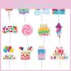 This set of birthday cake toppers features four stylish designs crafted from durable paper. Each package includes 12 pieces in vibrant pink and gold glitter accents, perfect for adding a festive touch to celebration cakes.