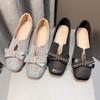 Fashion 2025High-end Summer Breathable Woven Single Shoes Cut-out Shallow Rhinestone Block Heel Women's Shoes