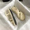 Fashion Summer Women Shoes Black Flat Leather Fashion Sandals Lace up Thick Soled Ankle Strap Sandals For Women Pinch Toe Flip Flops