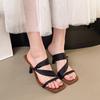 New square head Korean version of fashion 2025 cross-strap one-word sandals women's versatile slippers open-toed high heels tide