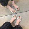 French satin bow open-toed flat sandals 2025 summer new round head outer wear flat heel cool slippers
