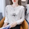 Cotton White Puppy Print Slanted Shoulder Long Sleeved T-shirt Women's Autumn Versatile Top