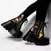Fashion 2025 Colorful Striped Round Toe Women's Ankle Boots with Velvet Zipper Thick Soled Boots Women Shoes Zapatos De Mujer