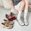 Fashion Bow Shallow Mouth Cute Pumps Spring Autumn Temperament Thick Middle Heel Mary Janes Shoes Solid Round Toe Suede Pumps for Women