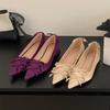 Fashion Gentle Unique Design Satin Mary Jane Flat oes Spring 2025 Pointed Toe Knot Women's Faion Low Heel Slip-On oes