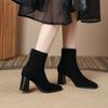 Fashion 2025 Spring Autumn New Women Ankle Boots Kid Suede Shoes Woman Square Toe Chain Side Zipper New Female Office Thick Heels Boots