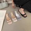 Fashion 2025 New Slipper Mules Low High Heels Shoes Summer Best Street Look Females Square Head Open Toe Bow Strappy Sandals Women