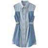 Fashion Style 2024 Summer New Arrival Women's Lapel Sleeveless Waist Mini Patchwork Denim Dress 5862085