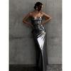 European and American Women's Clothing 2024 Spring/Summer New Arrival Fashion Sexy Sexy See-through Mesh Hot Silver Silm Sling Dress