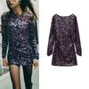 Export Li's Summer New Arrival Mesh See-through Heavy Embroidery Sequins round Neck Slim-Fit Commute Hip Bag Elegant Dress
