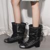 Bow strap woven western boots huge good-looking punk wide tube pile small short boots women