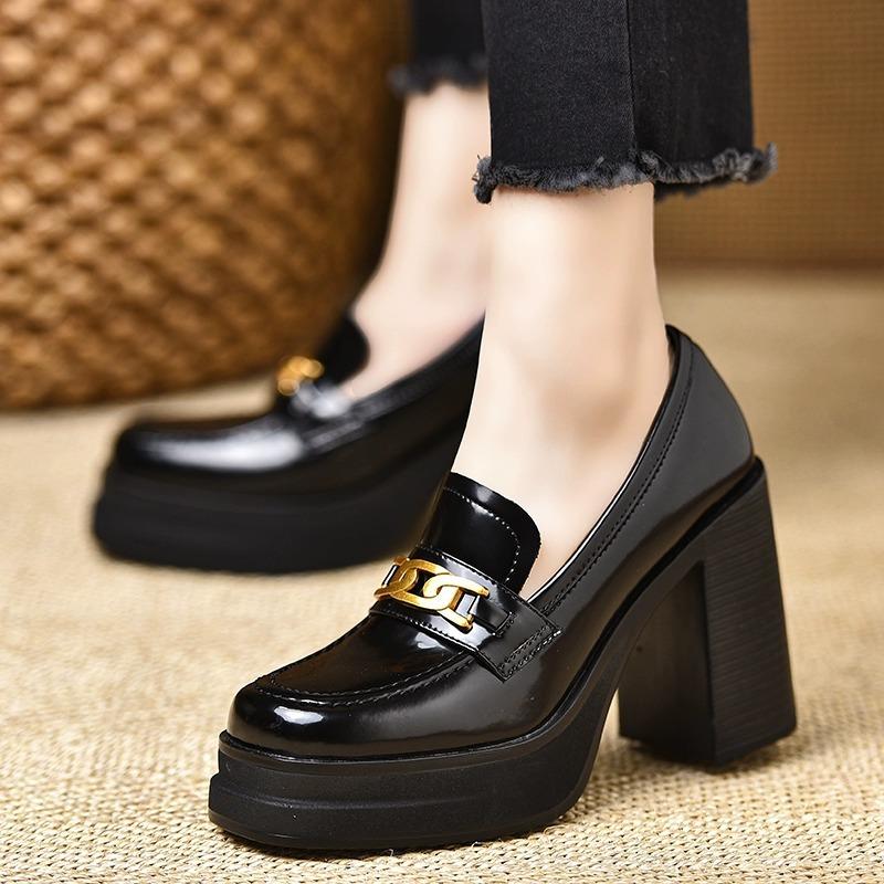 Patent leather fashionable thick-soled waterproof table single shoes women's spring new small man heightening temperament thick heel high heel leather