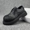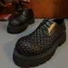 High-end men's shoes hollow and breathable casual leather shoes men's spring thick-soled leather hand-woven thick-soled high-tide shoes
