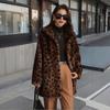 Autumn and winter new hooded environmentally friendly fluffy imitation mink fur leopard print plus long knee loose fashion coat