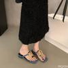Fashion 2025 new flat bottomed casual square toe flip flops with clipped toes Small niche metal square buckle fashionable women's shoes