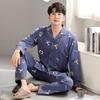 Men's Pajamas Loose Long Sleeved Cardigan Set Casual Home Wear Two-piece Set