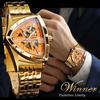 Automatyczny zegarek mechaniczny trójkątna obudowa szkieletowa konstrukcja pasek ze stali nierdzewnej męskie modne zegarki świecące