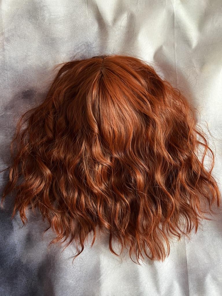 ALAN EATON Short BOB Synthetic WIGS Orange Brown Curly Wig with Bangs for Women Cosplay Daily Party Heat Resistant Fiber Wig