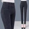 Winter Warm Casual Baggy Straight Jeans Thicken Fleece Wide Leg Denim Pants Women Elastic High Waist