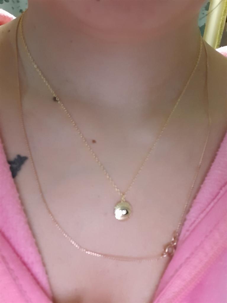 Colier cu pandantiv din aur foarte drăguț... Este puțin mai mic decât mă așteptam, dar este încă atât de drăguț și are un raport calitate-preț bun... Aș recomanda. Mulțumesc mult 🤗
