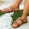 European and American foreign trade large size buckle flat bottom one-word shoes women's retro lightweight beach cool slippers Slippers